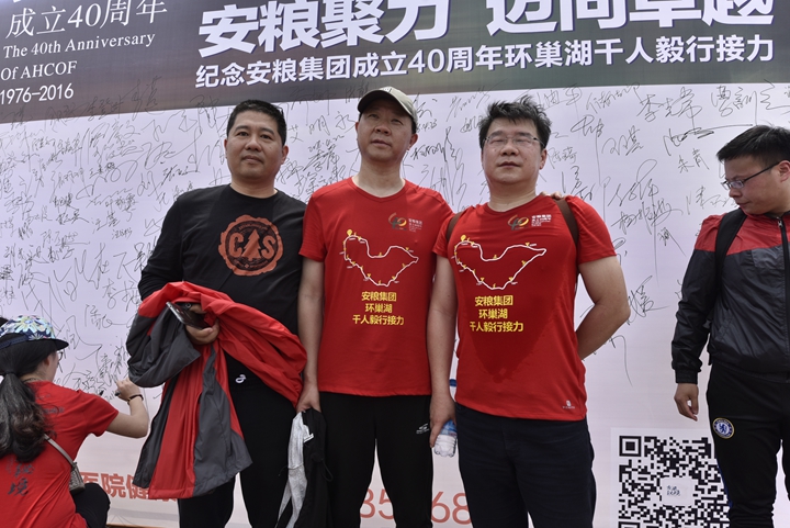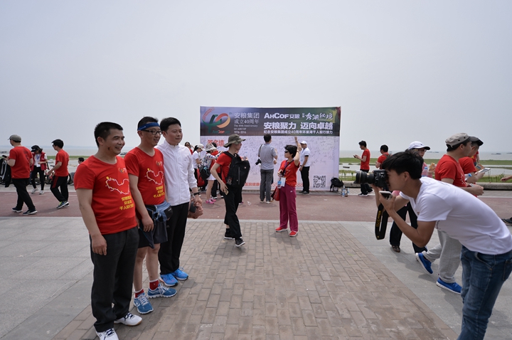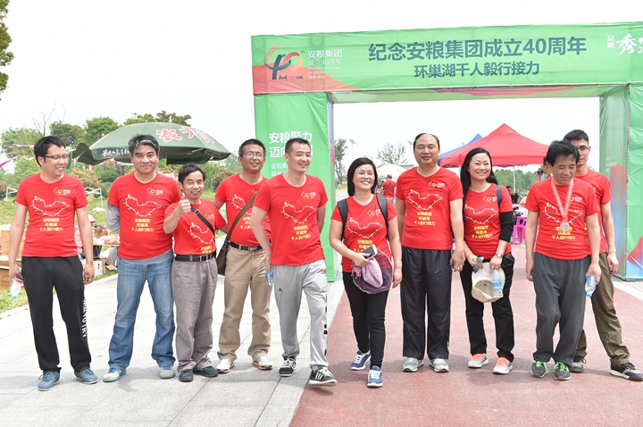 為慶祝安糧集團(tuán)成立40周年,2016年4月22-23日,為期兩天、歷程160公里的安糧集團(tuán)環(huán)巢湖千人毅行接力活動(dòng)在美麗的巢湖之濱熱情上演。本次活動(dòng)以“安糧聚力,邁向卓越”為主題,共有近千人參與,不僅有公司系統(tǒng)在職員工和退休老領(lǐng)導(dǎo)、老同志,國貿(mào)集團(tuán)范陽董事長還帶領(lǐng)國貿(mào)集團(tuán)的20多名同仁前來助陣。