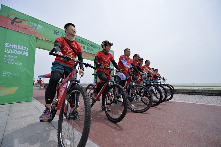 頂烈日出發(fā),迎風(fēng)雨歸來, 不經(jīng)歷風(fēng)雨,怎能見彩虹!本次活動(dòng)旨在通過比拼耐力、團(tuán)隊(duì)協(xié)作的戶外青春毅行方式,感懷安糧集團(tuán)四十年艱苦發(fā)展歷程,詮釋和回顧安糧集團(tuán)四十年坎坷發(fā)展之路!毅行隊(duì)伍匯聚成一股紅色浪潮,浩浩蕩蕩,與春潮共涌,隨鷗鷺爭翔。或漫步,或疾走,徒步者三五相攜,騎行者如離弦之箭。追憶往昔,暢想未來,個(gè)個(gè)喜笑顏開,人人意氣風(fēng)發(fā)。披朝露,追夕照,抵烈日,沐風(fēng)雨。攜手前行有春光作伴,夜幕沉沉我們從不孤獨(dú),火熱的太陽燃燒出安糧人的激情,突來的風(fēng)雨洗禮出我們的團(tuán)結(jié)和堅(jiān)毅。毅行隊(duì)伍一路向前,徒步騎行從容接力,通過24小時(shí)的一路堅(jiān)持,穿過環(huán)巢一市三縣,不斷向目標(biāo)邁進(jìn),向勝利進(jìn)發(fā)!