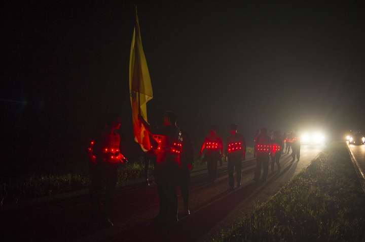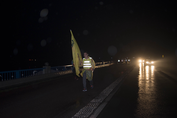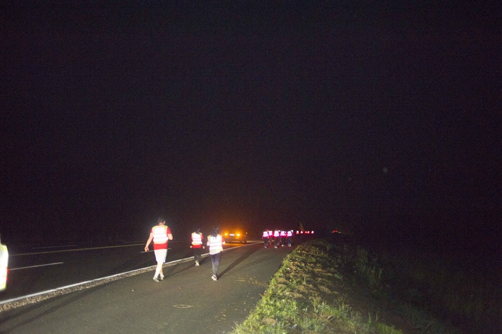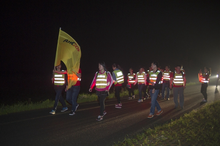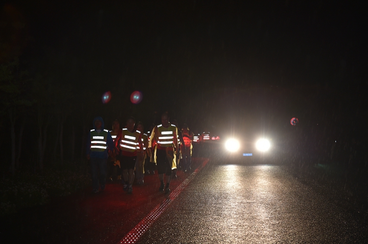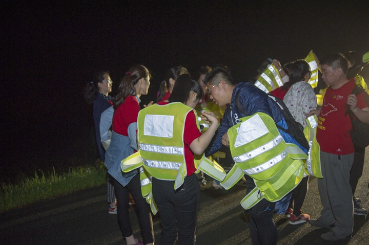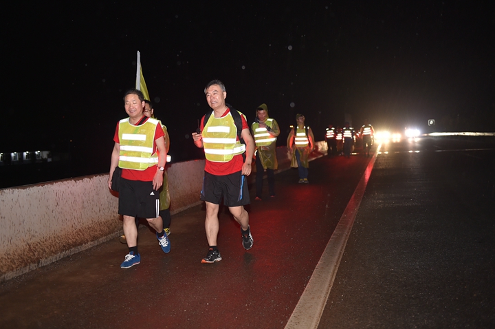 活動(dòng)分徒步、騎行兩個(gè)項(xiàng)目,以濱湖新區(qū)渡江戰(zhàn)役紀(jì)念館為起訖點(diǎn),自西向東、環(huán)巢而行,沿途先后歷經(jīng)肥東縣、巢湖市、廬江縣、肥西縣、濱湖新區(qū)。第一階段徒步毅行由解放碑出發(fā),行程10公里,參與人數(shù)700余人,12點(diǎn)前后陸續(xù)抵達(dá)半島碼頭接力點(diǎn)。第二階段全程150公里,由兩支自行車騎行大隊(duì)與四支徒步大隊(duì)組成。在第一階段隊(duì)伍全部抵達(dá)后,第二階段隊(duì)伍中午12:30騎行隊(duì)伍出發(fā),按照45km/棒開始接力。22日晚7時(shí)許,騎行隊(duì)伍抵達(dá)預(yù)定地點(diǎn)。19:30,徒步隊(duì)伍接力開始出發(fā),挑戰(zhàn)夜行,每15公里交接一棒。22日夜的巢湖岸邊,夜黑如墨,風(fēng)大雨急,氣溫驟降,四組徒步隊(duì)員們頂風(fēng)冒雨,不畏艱難、相攜相伴,堅(jiān)毅前行,如時(shí)完成!