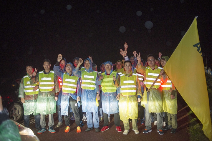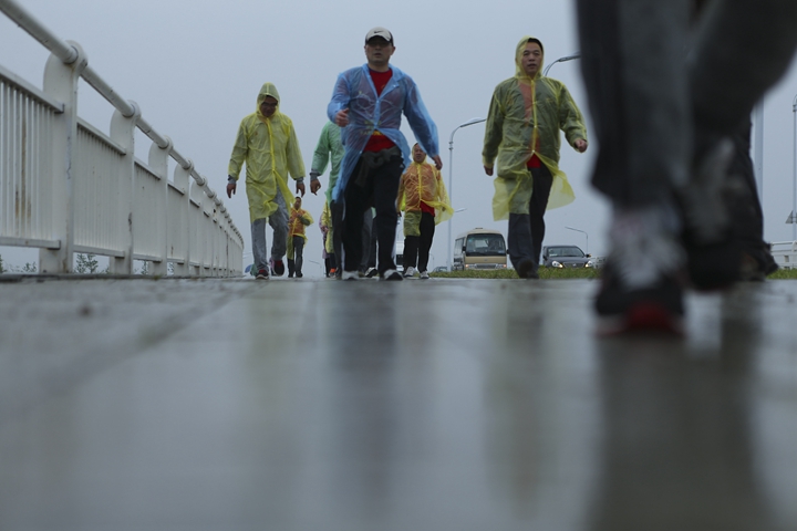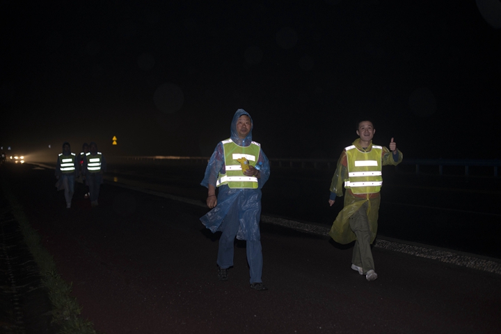 23日風(fēng)雨交加的清晨,公司領(lǐng)導(dǎo)班子抵達(dá)最后一階段起點(diǎn),與徒步隊(duì)伍一起向目的地發(fā)起沖刺!9:30,最后一只徒步隊(duì)伍沖出雨幕,勝利抵達(dá)紀(jì)念碑終點(diǎn)站。