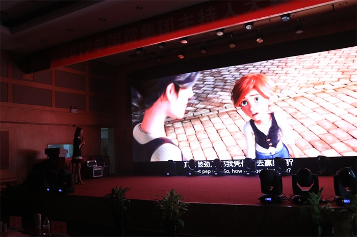 決賽分素質(zhì)表現(xiàn)、才藝展示、模擬主持等三個環(huán)節(jié)。素質(zhì)表現(xiàn)是由選手模仿或者自己設(shè)計一段節(jié)目進(jìn)行現(xiàn)場主持展示,考驗的是選手作為主持人的基本功底。安糧的選手們準(zhǔn)備充分、各出心裁,有美食脫口秀、“國貿(mào)詩詞大會”,還有“國貿(mào)快訊”、國貿(mào)春晚等等。其中賈雙雙以少兒節(jié)目“國貿(mào)大風(fēng)車”主持人的身份登場,以其俏皮可愛的風(fēng)格、親切流暢的主持贏得現(xiàn)場“小伙伴”們的掌聲。