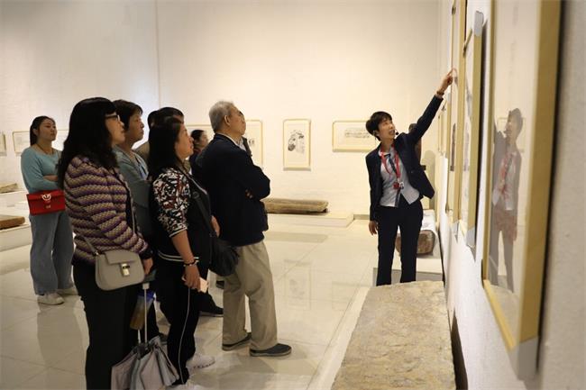博物館內(nèi)青墻黛瓦、翹角飛檐,處處展示著徽州文化的獨特魅力。在講解員的帶領(lǐng)下,大家先后參觀了徽派石雕瑞獸展廳、古徽州木雕展廳、石刻人物造像展廳、百匾堂展廳等地方。一棟棟矗立于展區(qū)“無夢園”中的清代老宅給了大家視覺上的直接震撼,館中的民俗用品更將大家?guī)Щ亓送舻臅r光。