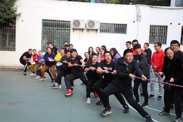 簡短的開幕式后,十二個比賽項目輪番上演,比賽場迅速變成了一片歡樂的海洋?!熬湃耸恪表椖柯氏鹊菆?,較之上屆的“五人六足”可謂“更快、更強”,安糧期貨一馬當先;“摸石過河”接踵而至,安糧期貨熊青寶協(xié)調迅捷,強勢衛(wèi)冕;“跳大繩”此番桂冠易主,安糧期貨又下一城;“夾乒乓球”同時考驗“筷子”和“乒乓球”兩項“國技”,集團紀委孫毅書記“一箭三雕”驚艷全場;“滾雪球”頗有田忌賽馬的謀略比拼,安糧實業(yè)技高一籌。拔河比賽壓軸登場,合肥建工“強漢”如林,包攬三甲。全天比賽結束,安糧期貨以5枚團體項目金牌和3枚個人項目金牌,成為本屆趣味運動會的最大贏家。