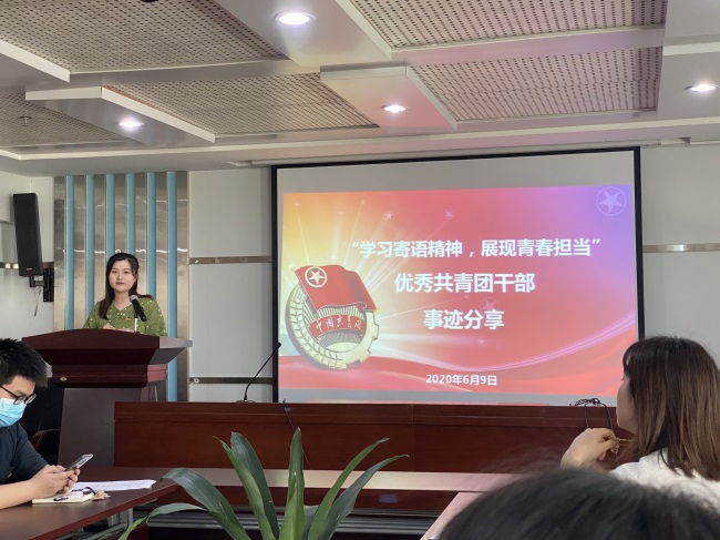 “省屬企業(yè)優(yōu)秀共青團干”稱號獲得者、安糧國際團支部副書記兼組織委員趙夢晶同志進行優(yōu)秀事跡分享。她結合在共青團工作經(jīng)歷和自身感悟鼓勵青年團員們積極擔當,踏實做事,在團員青年中引起了強烈的反響和共鳴。隨后與會人員共同觀看了由安糧青年員工精心編排參演的慶祝新中國成立70周年、五四運動100周年主題情景劇《使命的接力》。