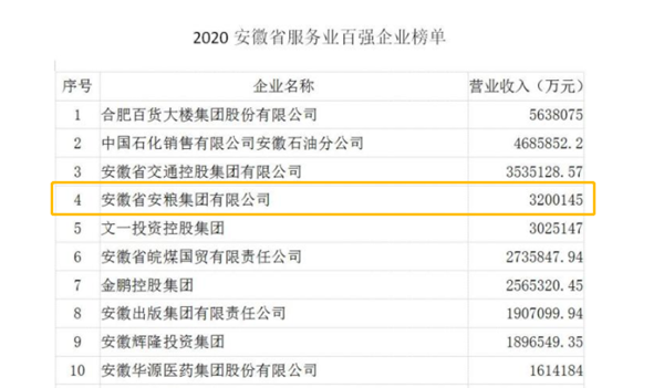 安糧集團(tuán)位列安徽省服務(wù)業(yè)百強(qiáng)企業(yè)第4位