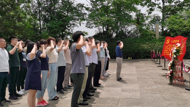 大家隨后來到紀念塔緬懷先烈、敬獻花籃。同志們面向黨旗,重溫入黨誓詞。嘹亮的誓言久久回響,深深地埋在每一位黨員的心中。