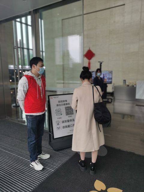 面對突如其來的新一輪嚴(yán)峻疫情,早高峰時期員工進(jìn)入大樓前的雙碼核驗(yàn)和測量體溫工作,導(dǎo)致在入口處排起長隊,影響同事們按時到崗,這給安糧中心物業(yè)管理帶來了難題。安糧團(tuán)委在集團(tuán)黨委的指示下聞令而動、迅速集結(jié),來自集團(tuán)團(tuán)委各下屬支部的團(tuán)員青年志愿者們,在做好個人防護(hù)的基礎(chǔ)上,穿起“紅馬甲”,主動申請投身到疫情防控工作中,大大加快了早高峰通行效率。