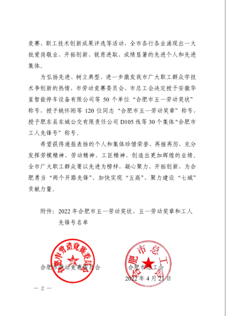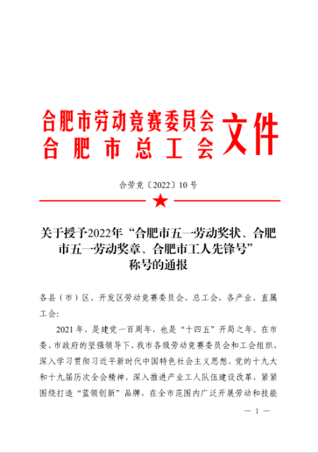 5月1日,合肥市勞動(dòng)競(jìng)賽委員會(huì)、合肥市總工會(huì)聯(lián)合發(fā)布《關(guān)于授予2022年“合肥市五一勞動(dòng)獎(jiǎng)狀、合肥市五一勞動(dòng)獎(jiǎng)?wù)?、合肥市工人先鋒號(hào)”稱號(hào)的通報(bào)》,合肥建工辦公室主任張海東榮獲2022年“合肥市五一勞動(dòng)獎(jiǎng)?wù)隆狈Q號(hào)。