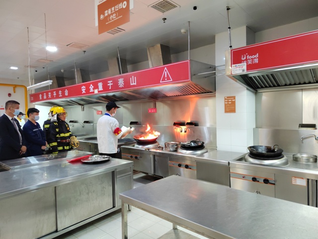 下午3時,消防應急演練總指揮下達演練開始指令,隨后安糧中心辦公樓火警警報鳴響,消防和應急救援隊員有序引導員工開展應急疏散演練,熟悉應急撤離路線、避難場所、物資保障、消防設備使用等流程。疏散演練結束后,參演員工還觀摩了安糧中心室外廣場模擬滅火演練、職工食堂灶臺起火處置。