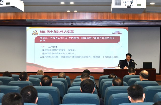 楊軍為安徽國(guó)貿(mào)黨員領(lǐng)導(dǎo)干部作了“深刻領(lǐng)會(huì)豐富內(nèi)涵 踔厲奮發(fā)邁向新征程 深入學(xué)習(xí)宣傳貫徹黨的二十大精神”主題宣講。