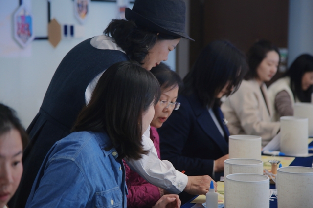 活動期間,花藝老師詳細講解了壓花臺燈制作方法,參加活動女職工盡情發(fā)揮想象力和創(chuàng)造力,精心挑選壓花材料,巧思創(chuàng)意構(gòu)圖,耐心拈花制作,一盞盞各具特色的壓花臺燈陸續(xù)點亮其樂融融的溫情畫面。