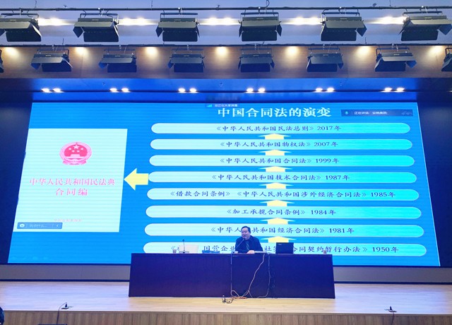 安徽大學法學院副教授於恒強圍繞合同法律風險做了講解,對《民法典》合同編中主要合同類型進行介紹,闡釋了在合同訂立過程中存在的風險,并濃縮了二十條防風險要點,以通俗易懂的語言為廣大員工提供工作指引。