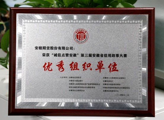 近日,“誠信點(diǎn)贊安徽”第三屆安徽省信用故事大賽結(jié)果揭曉,安糧期貨憑借微電影《用堅(jiān)守筑牢誠信基石》,成功斬獲優(yōu)秀獎(jiǎng),并榮獲優(yōu)秀組織單位稱號(hào),為公司誠信建設(shè)添上了濃墨重彩的一筆。