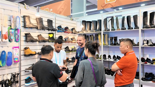 小家電區(qū)域里,安糧的電風(fēng)扇憑借智能控溫、多檔風(fēng)速調(diào)節(jié)等功能有效兼顧了節(jié)能與舒適體驗(yàn),多樣化的外觀也能輕松適配各種家居風(fēng)格。鞋類(lèi)品展區(qū)的勞保工具鞋憑借耐磨防滑、支撐性好的優(yōu)點(diǎn)吸引了建筑、物流等行業(yè)客戶的咨詢。