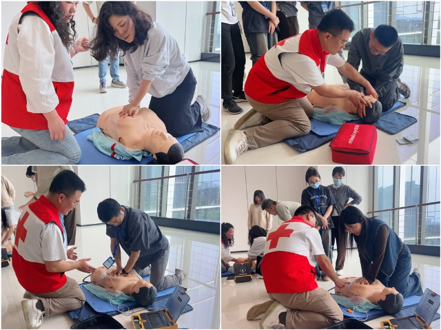 活動緊扣“學(xué)技能、強擔(dān)當(dāng)、踐初心”目標(biāo),精心設(shè)置標(biāo)準化急救技能培訓(xùn)課程。在安徽省紅十字會專業(yè)講師的指導(dǎo)下,黨員同志們學(xué)習(xí)了心肺復(fù)蘇(CPR)、自動體外除顫儀(AED)操作、創(chuàng)傷止血包扎、氣道異物梗阻處理等核心急救技術(shù)。針對心梗、腦卒中早期識別及燒燙傷應(yīng)急處置等日常生活中常見的突發(fā)場景,講師也進行了專項教學(xué)。課程采用理論講解與實操演示相結(jié)合的模式,借助模擬人體設(shè)備逐項分解急救動作要領(lǐng),確保參訓(xùn)黨員能夠掌握規(guī)范、科學(xué)的急救流程。