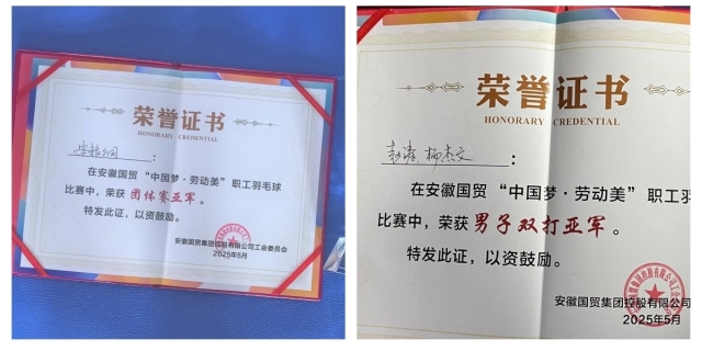 在5月27日落幕的 “中國夢?勞動美” 安徽國貿(mào)職工羽毛球賽中,安糧集團代表隊團結協(xié)作、奮力拼搏,奪得團體亞軍。來自安糧新鏈的楊杰文與安糧期貨的趙濤在單項賽中斬獲男子雙打亞軍,展現(xiàn)出安糧員工昂揚向上的精神風貌。