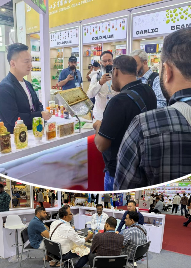 蜂蜜產(chǎn)品通過邀請采購商現(xiàn)場試吃巢蜜,直觀傳遞產(chǎn)品“純天然”核心特質(zhì),成功為展位聚集超高人氣。來自中東、東南亞采購商圍繞巢蜜的規(guī)格、品質(zhì)與業(yè)務(wù)員展開多輪洽談;其中,孟加拉國采購商已就液態(tài)蜂蜜產(chǎn)品明確采購意向,雙方當(dāng)前已進(jìn)入實(shí)質(zhì)性合作磋商階段,有望快速轉(zhuǎn)化為穩(wěn)定訂單。
